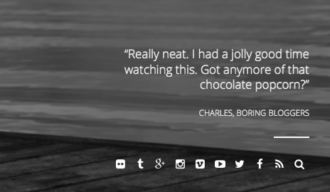 - Quote Format: this is used for review items on the "Reviews + Video" page template. The post content is used as the quote and the post title is used as the quote source. There are no links to the individual post page. Reviews example from home page...