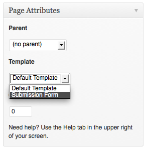 The post submission form displays a form for users to submit locations without having to login to the site. Submissions are listed as "pending" on the post list. You can create a form page by selected the "Submission Form" page template on the right-hand side of the page edit screen (see below screenshot). Additional options are available on the customize page (appearance > customize).