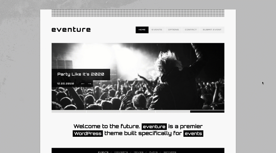Eventure is a premier WordPress theme built specifically for events. This theme utilizes a custom calendar system unlike any other. With traditional calendars, there’s a lot of wasted space showing dates that don’t have any activity. With eventure, only the dates with actual events will show up, maximizing space and ease of use.