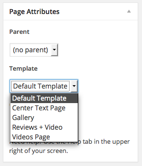 By default pages will display the post content in the middle of the page. You have additional options available under the "page attributes" menu on the page edit screen (see screenshot below).