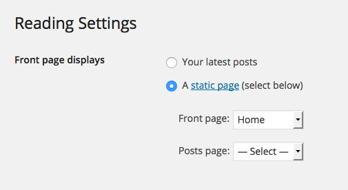 By default the theme will display the latest posts on the home page. To display a play button with review listed in the lower-right corner (like the demo site), be sure to assign a static page that is using the "Reviews + Video" page template. In the screenshot below, you can see that the "Home" page is being used (you can disregard the "posts page" option). More info »