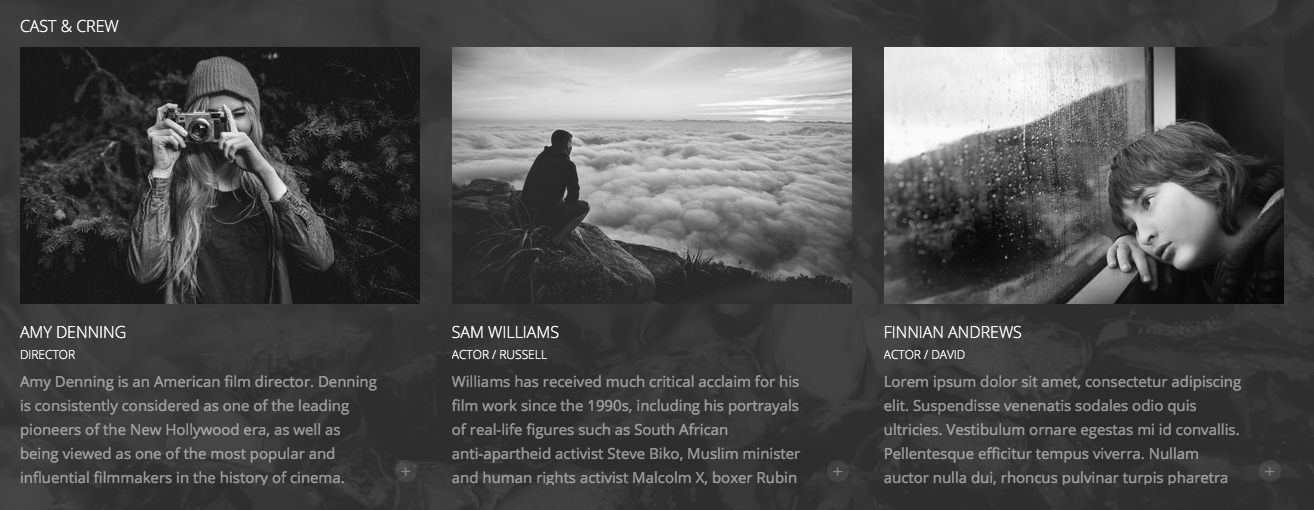 To control the footer credits at the bottom of the page, navigate to "appearance" > "customize" and open the "Footer" section. To create the "poster credits" style, simply use [SQUARE BRACKETS] to group text together and (round brackets) to make text small.