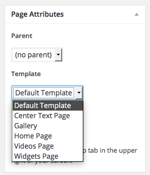 By default pages will display the post content in the middle of the page. You have additional options available under the "page attributes" menu on the page edit screen (see screenshot below).