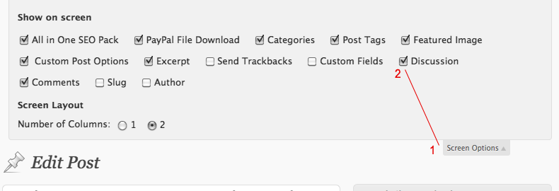 - If you don't see this, you can turn it on by clicking "screen options" and checking the box to display discussion options...